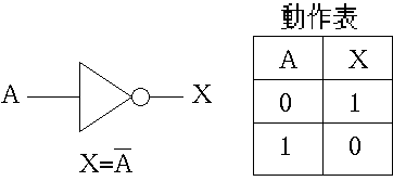 - 入力AがのHとLが出力XではLとHになります.インバータ