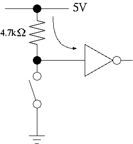 この用途のために使う抵抗(4.7kΩ)のことを「プルアップ抵抗」といいます.